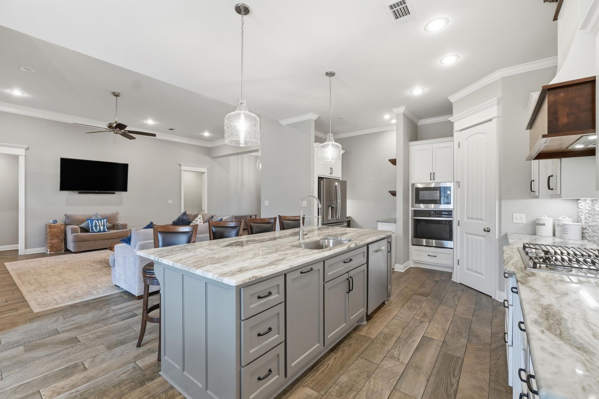 Welcome to 2930 Shadow Lane in Conway, a beautifully appointed home offering comfort, style, and thoughtfully designed living spaces. Luxurious finishes and spacious rooms provide flexibility for everyday living and entertaining. The primary suite is a private retreat with a spa-inspired bath, large walk-in closet, and direct backyard access. Enjoy exceptional storage throughout, including a floored attic, storage room off the garage, additional space behind the third bay, plus a well-designed kitchen featuring a walk-in pantry, under-island cabinetry, and built-in utensil storage. Massive amounts of extra storage with floored attic, storage behind 3rd car garage and lots of closets! Step outside to an impressive backyard with a stunning rock patio, perfect for gatherings. Relax in the hot tub or unwind around the gas firepit. A three-car garage adds convenience and function. With 4,730 sqft under roof, including garages, storage, and covered patio, this well-maintained home offers space for all. Washer, dryer, and refrigerator may stay.