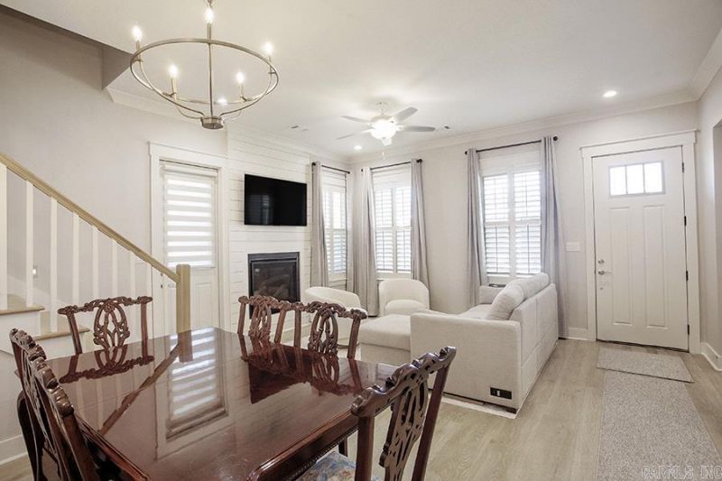Charming and fresh, this Porches of Rockwater home is located just steps from the Arkansas River Trail and minutes to Argenta and downtown Little Rock/NLR. Open-concept floor plan with 10' ceilings. Welcoming kitchen with abundant natural light and breakfast bar. Wonderful main level primary suite, Pella windows/doors, LVP flooring, gas fireplace, and quartz countertops. Main-floor also has nice bright laundry room and half bath. Upstairs landing perfect for small desk, sitting area or library with two nice size bedrooms and a full bath. Enjoy entertaining and relaxing on the screened-in side porch. Home has metal roof, rear-loading garage, and welcoming front porch. HOA covers lawn care, fire pit, and fencing.