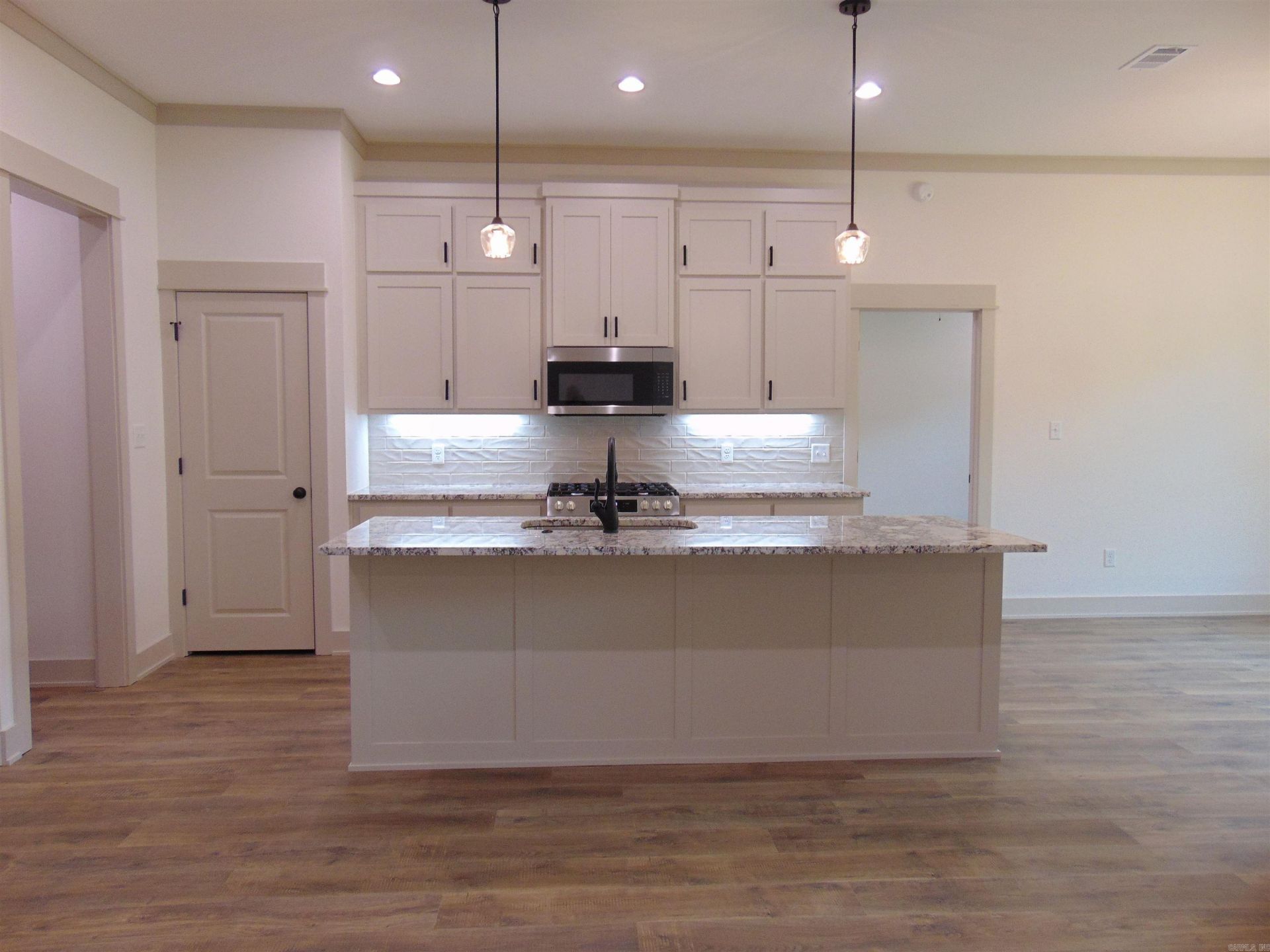 This magnificent 4 bedroom, 2 bath NEW CONSTRUCTION is complete. Quality and attention to detail makes this one exceptional. Open floor plan. Beautiful crown molding and all windows trimmed. Custom cabinets in kitchen & baths. Brick front porch with tongue and groove ceiling. Spacious family room open to kitchen with large breakfast bar, stainless steel appliances, gas stove, microwave, under counter lighting, quartz countertops, tile backsplash, pantry and nice size breakfast area. 10' ceiling in main living area and 9' in other areas. Luxury vinyl flooring throughout. Primary bedroom separate from other 3. Primary bath has tile shower plus tub. Huge, covered patio with tongue and groove vaulted ceiling overlooks private backyard, perfect for relaxing or entertaining. Large lot, accent lighting in eaves, gutters, partially fenced. This one is truly special! A MUST SEE!!
