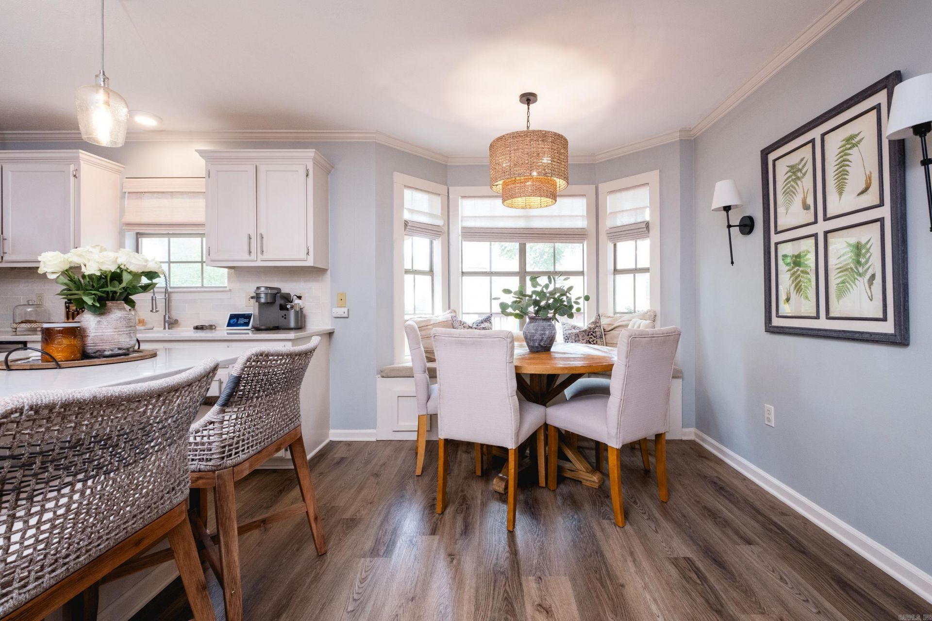 Major improvements & Upgrades done - Move in Ready! Charming home w/ deck for outdoor enjoyment and level fenced play yard.Updated kitchen appliances, farmhouse sink, quartz countertops & new backsplash. Custom designed breakfast nook w/ built-in storage in kitchen bay window. Interior painted in 2018. Recessed lighting added in greatroom and lighting fixtures updated throughout home. Custom woven window shades installed throughout. Primary bath updated w/quartz vanity & new tile floor. Double walk in closets in bath. Hall bath updated w/ granite vanity & updated tile floor. Plumbing fixtures updated. LVP flooring in 2023 & carpet in bedrooms in 2024. Closet organizers in guest bedrooms in 2023 & 2024. New HVAC in 2023. Ductwork cleaned 2026. HVAC maintenance plan purchased in 2026 transferable to new owners. Ductwork cleaned & resealed in 2023. French drains & backyard drainage system installed in 2023. New sod & landscaping 2023 and refreshed in 2026. Deck stained in 2025. New brick mailbox installed in 2023. Termite & pest control services + lawn treatment service. Well-maintained home. Possession June 21- sellers finishing jobs here. Showingtime apts only! Read agent Rmks